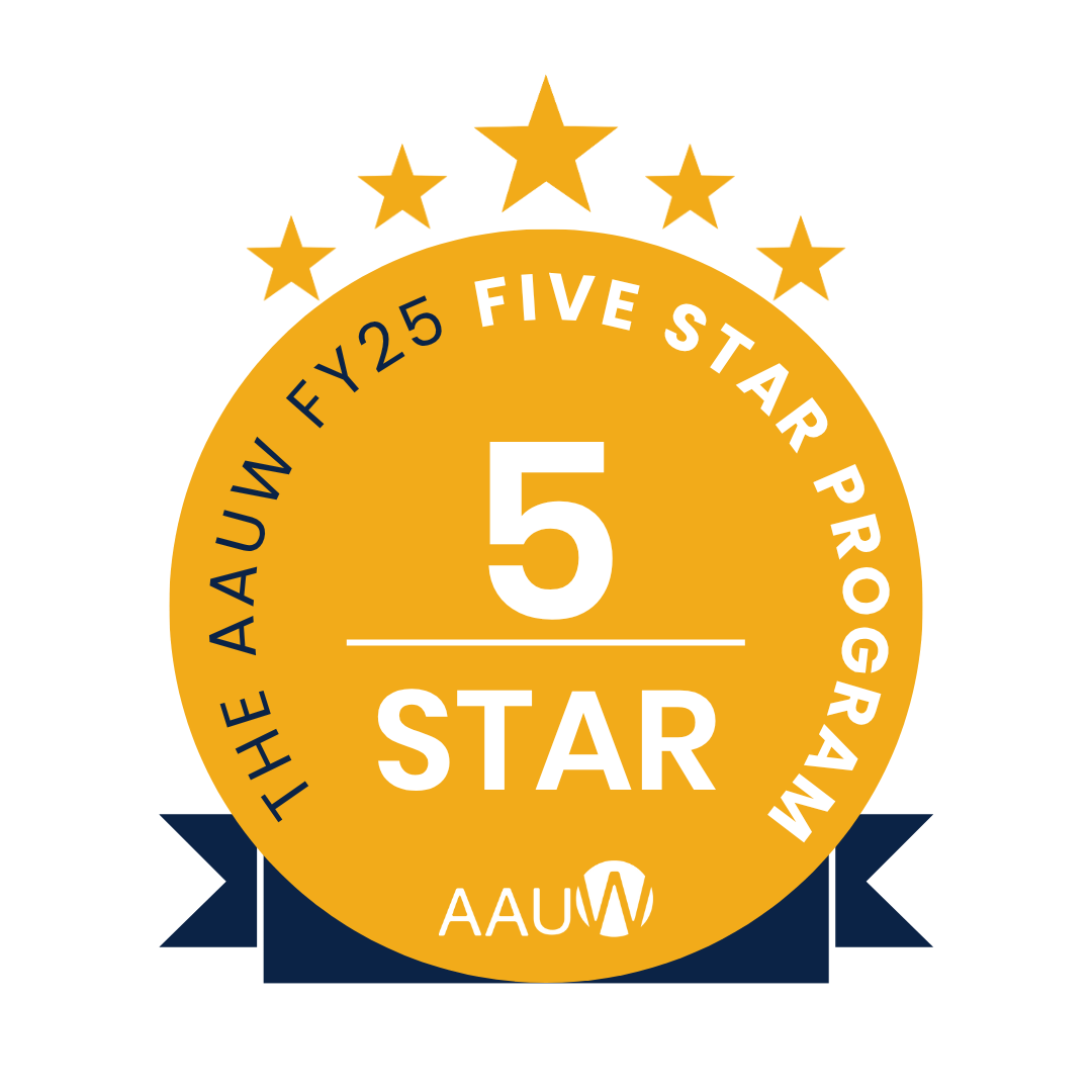 AAUW has recognized AAUW Baltimore as a Five Star branch. The AAUW Five Star Program is designed to help branches align with AAUW’s strategic priorities and advance our mission of achieving gender equity for women and girls. By participating in this program, branches contribute to a strong network of advocates, elevating both your local impact and our collective efforts nationwide.